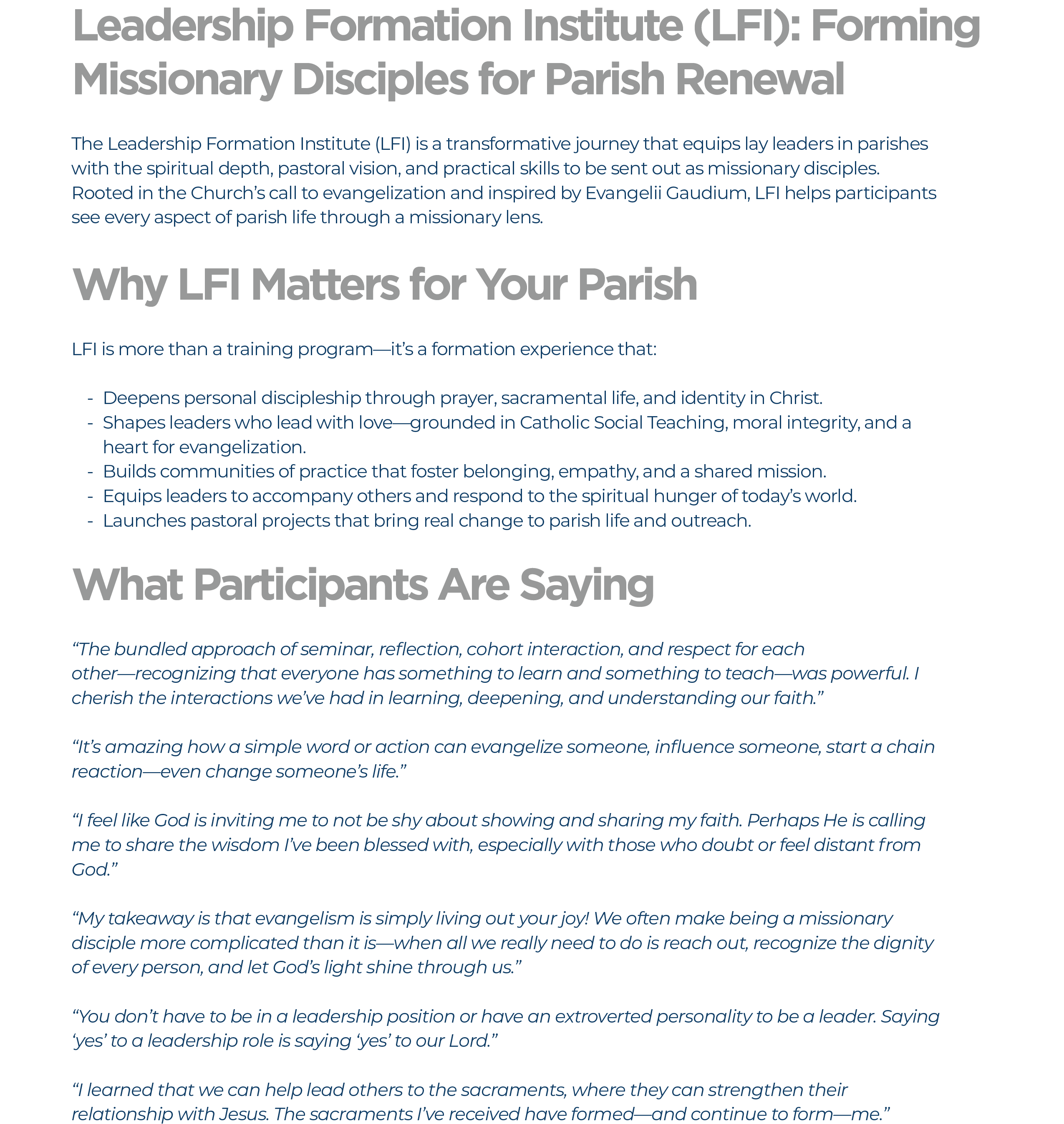 CIC – Leadership Formation Institute – Three Phases of Formation